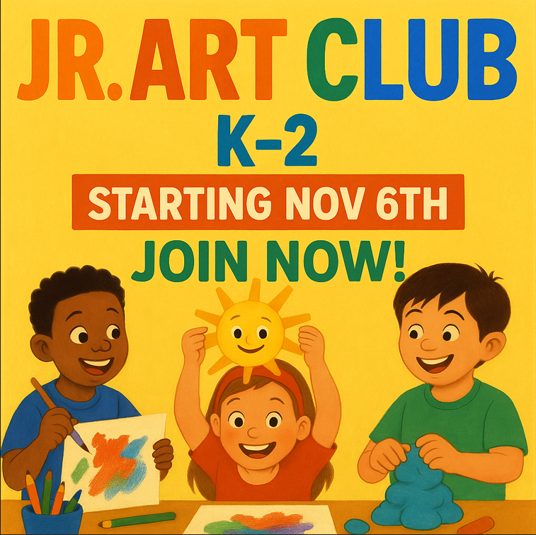 Join K-2 Art Club Now! We are now accepting applications for the Jr. Art Club (open to Kindergarten through 2nd Grades). Enrollment is first come, first served, with space for 20 creative students. The club will run from November 6th through January 8th– Thursday’s 3pm-4pm. There is a $60 fee for materials.