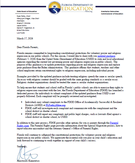 A Letter from the Florida Department of Education