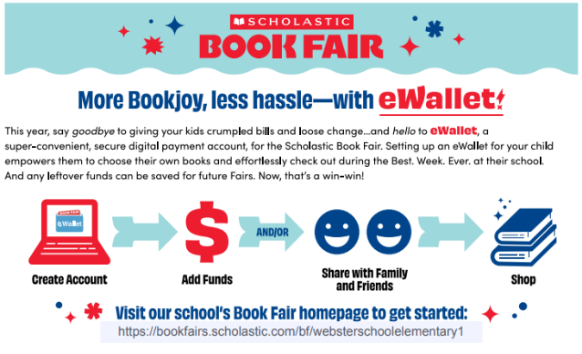 Every class will visit the book fair during their regularly scheduled Media resource time. There are two family night options (the 10/9 Mason Voyage Night & 10/17 Trunk or Treat Night). You may attend the book fair with your child during their scheduled time (contact your child’s teacher). Academic time is important to us: we will not pull students from class to shop the Book Fair. Please pay for the Book Fair by creating an eWallet. It is the safest way to fund your child’s shopping! Click here to create an eWallet for your child today.